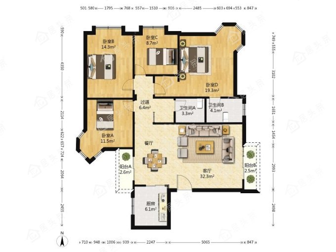 户型4室2厅2卫