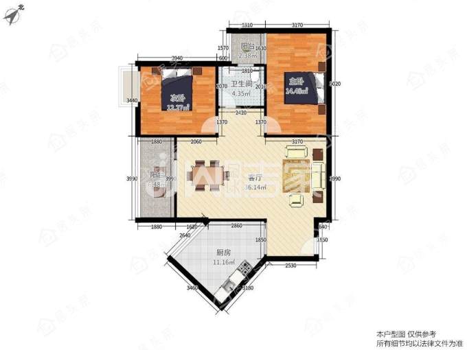 户型2室2厅1卫