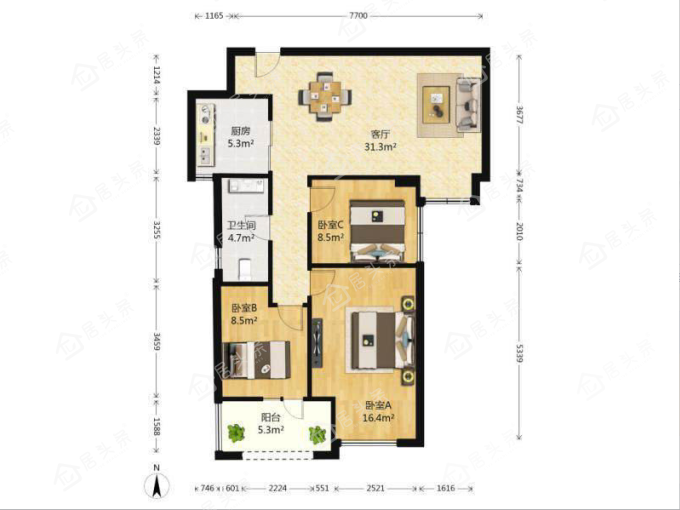 户型3室2厅1卫
