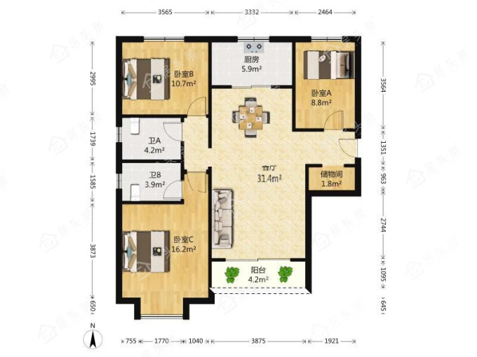 户型3室2厅2卫