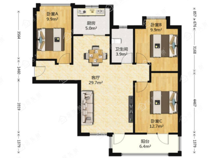 户型3室2厅1卫