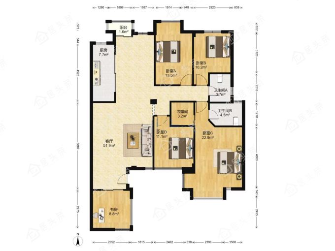 户型4室2厅2卫