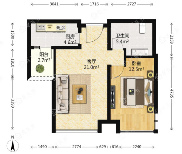 户型1室1厅1卫