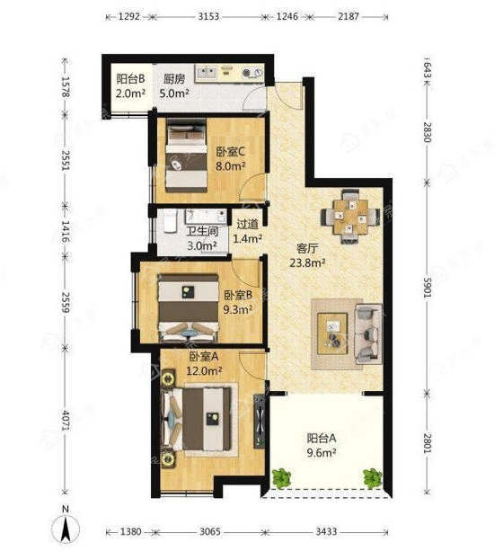 户型3室2厅1卫