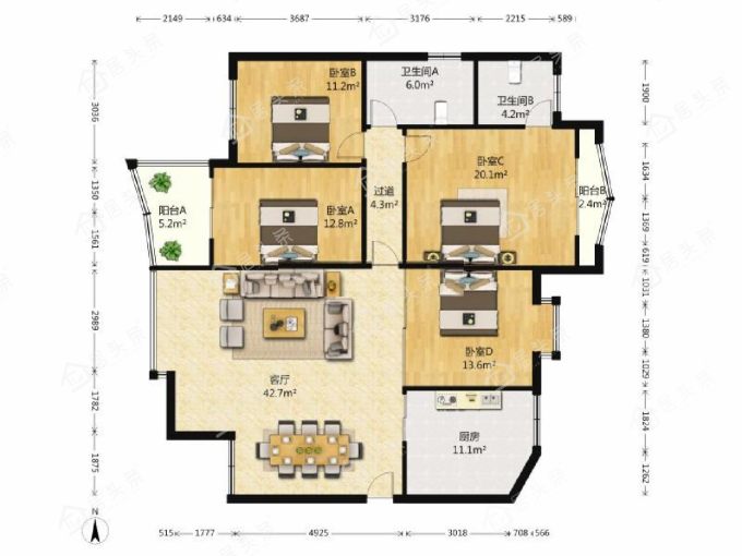 户型4室2厅2卫