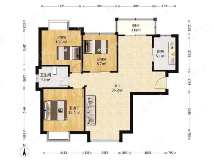 户型3室2厅1卫