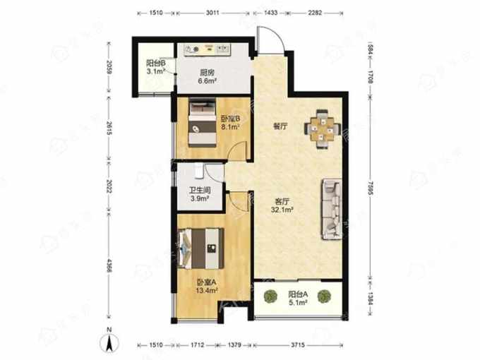 户型2室2厅1卫
