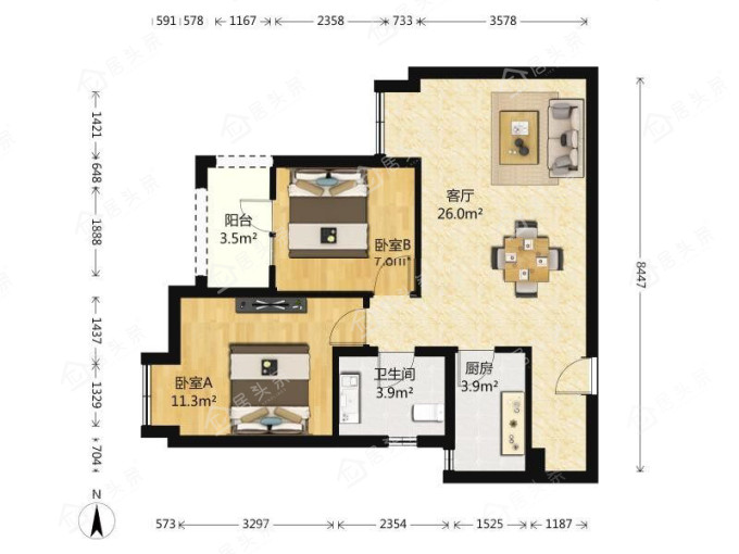 户型2室2厅1卫