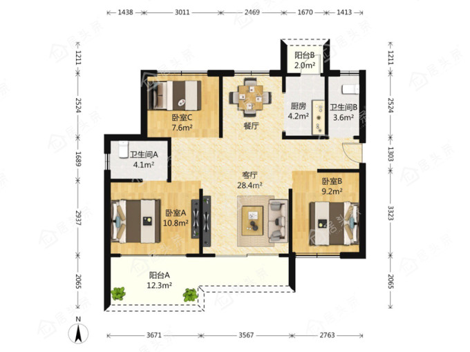 户型3室2厅2卫