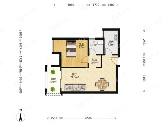 户型1室1厅1卫