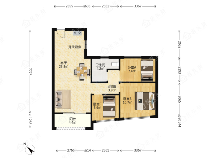户型3室2厅1卫