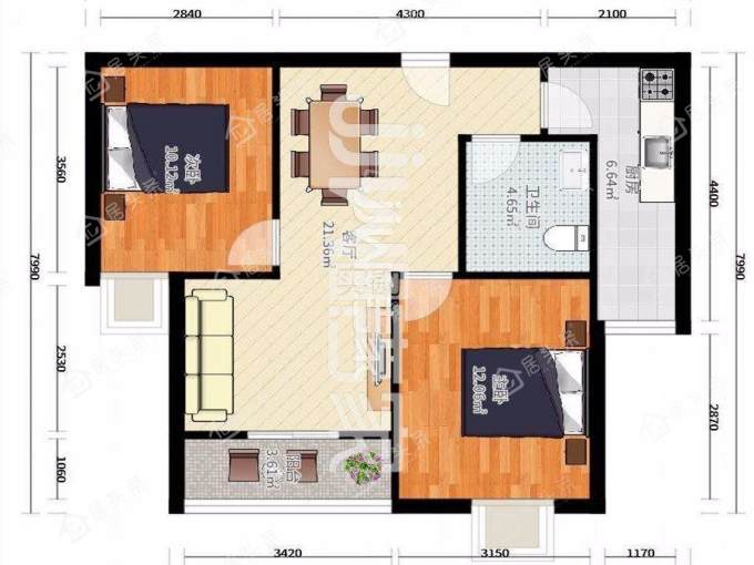 户型2室2厅1卫