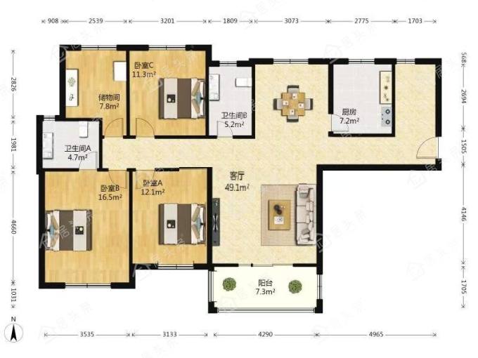 户型4室2厅2卫