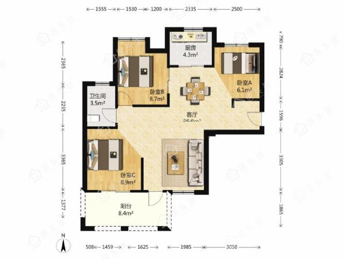 户型3室2厅1卫