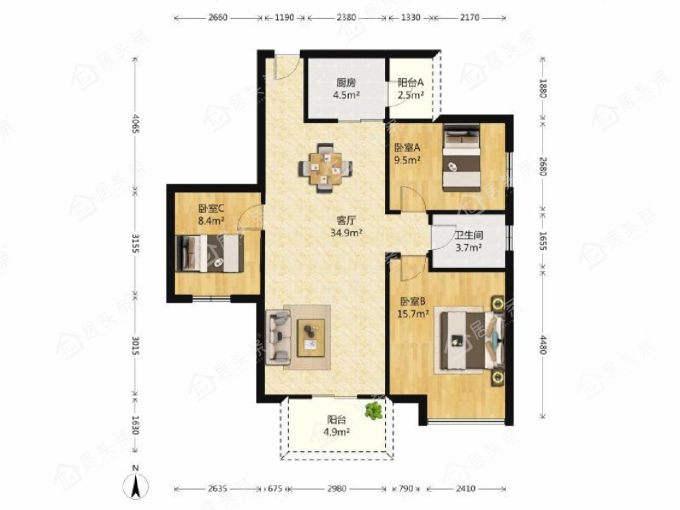 户型3室2厅1卫