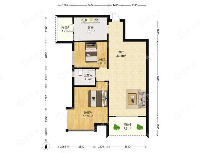 户型2室2厅1卫