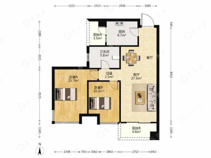 户型2室2厅1卫
