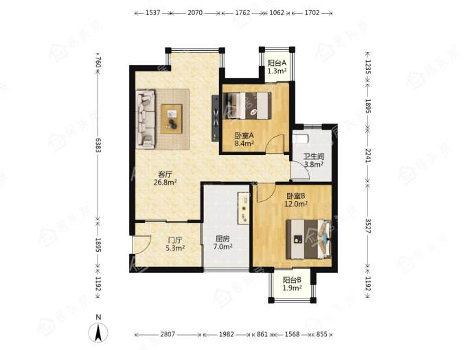 户型2室2厅1卫