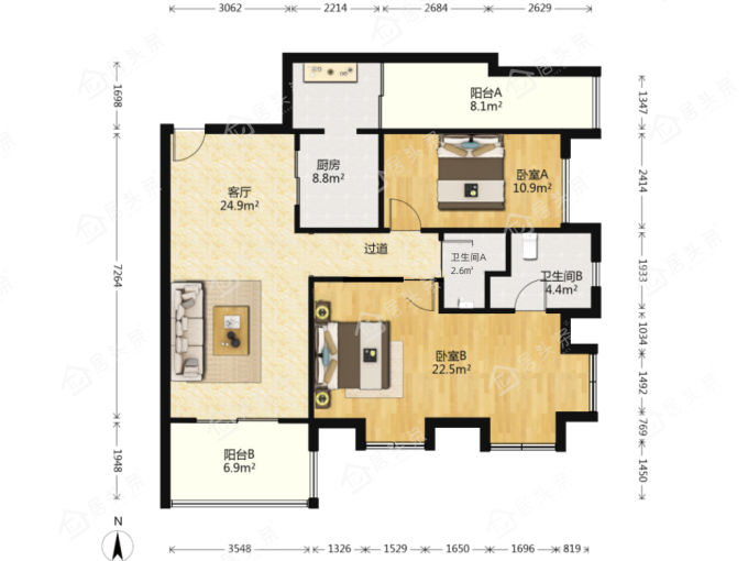 户型3室2厅2卫