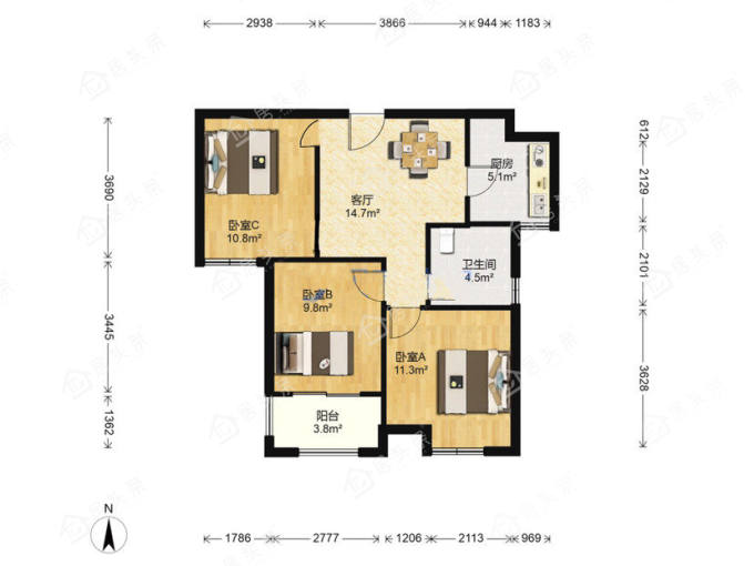 户型3室1厅1卫