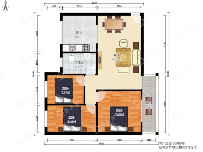 户型3室2厅1卫