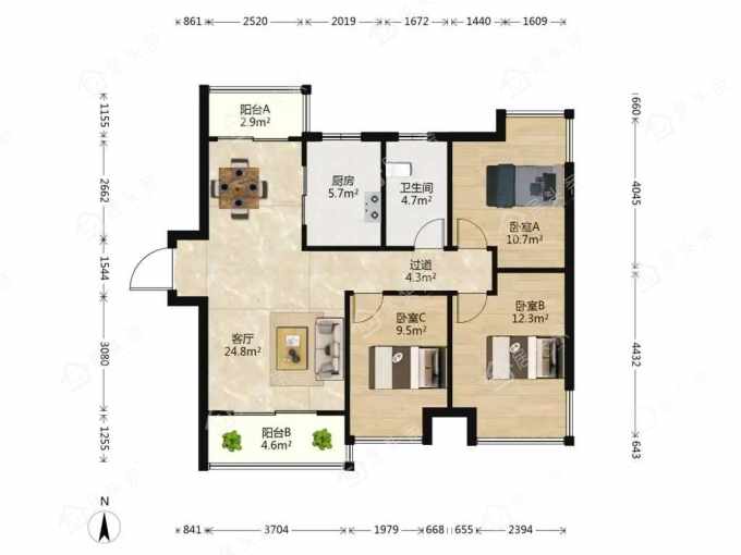 户型3室2厅1卫