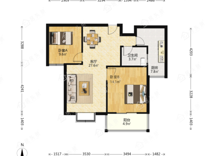 户型2室2厅1卫