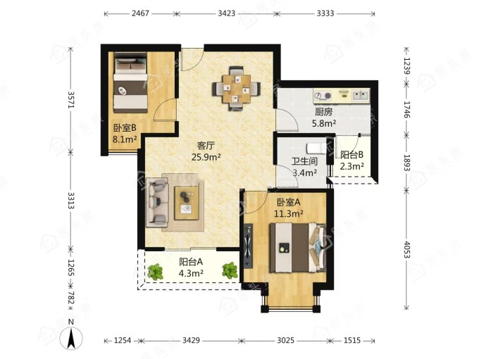户型2室2厅1卫