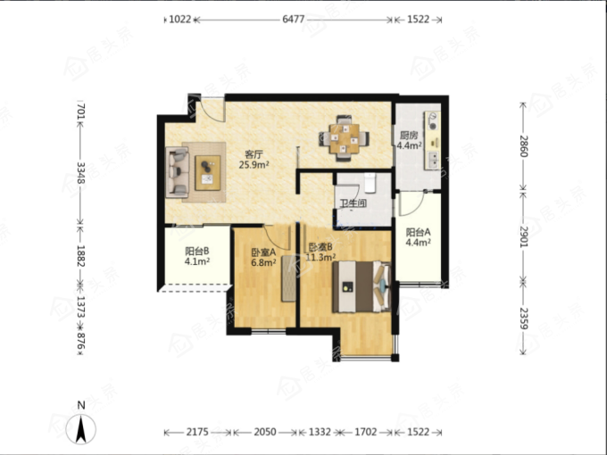 户型2室2厅1卫