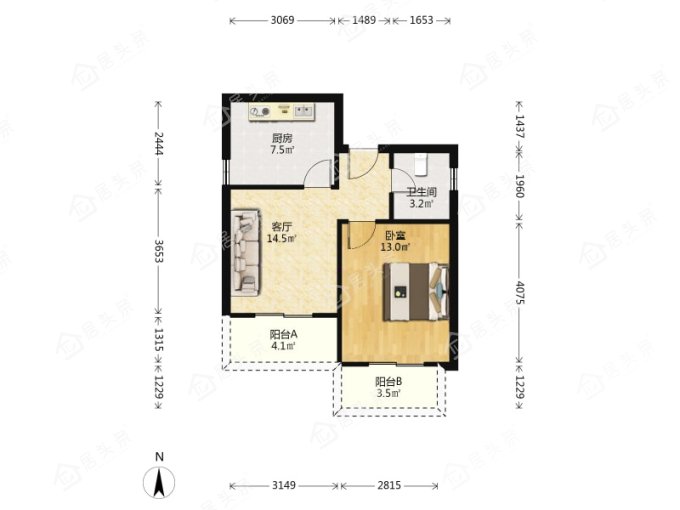 户型1室1厅1卫