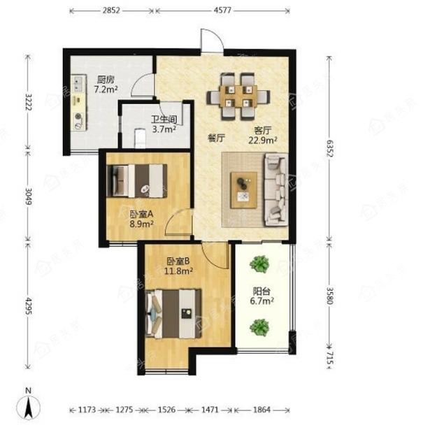 户型2室2厅1卫