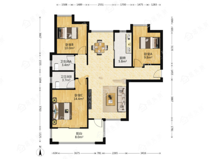 户型3室2厅2卫