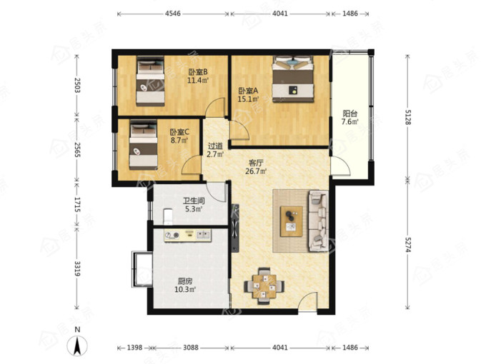 户型3室2厅1卫