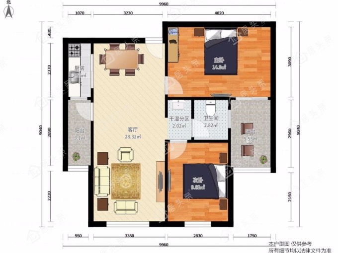 户型2室2厅1卫