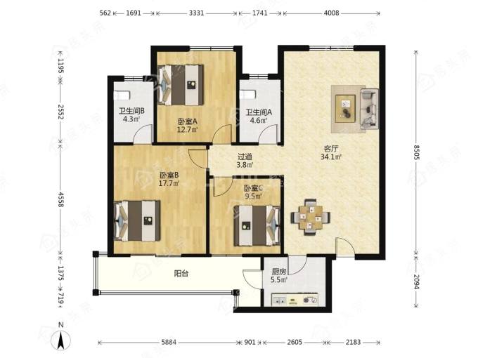 户型3室2厅2卫