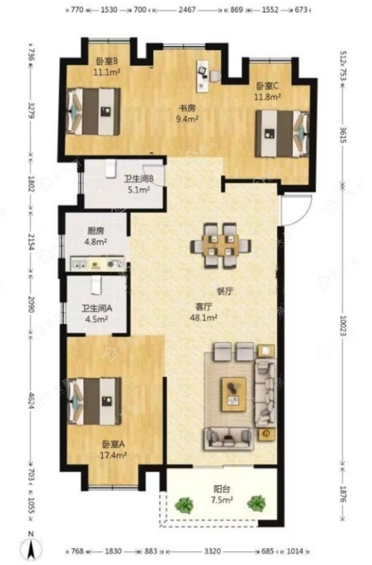 户型4室2厅2卫