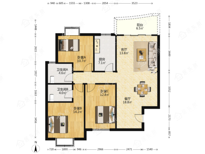 户型3室2厅2卫