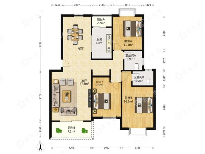 户型3室2厅2卫