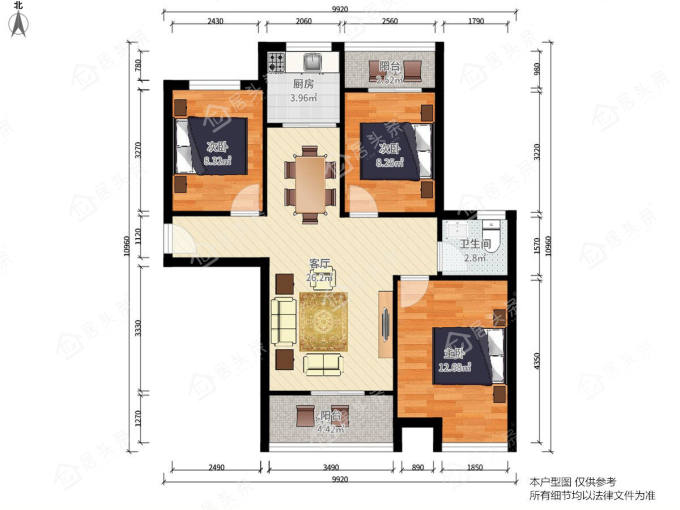 户型3室2厅1卫