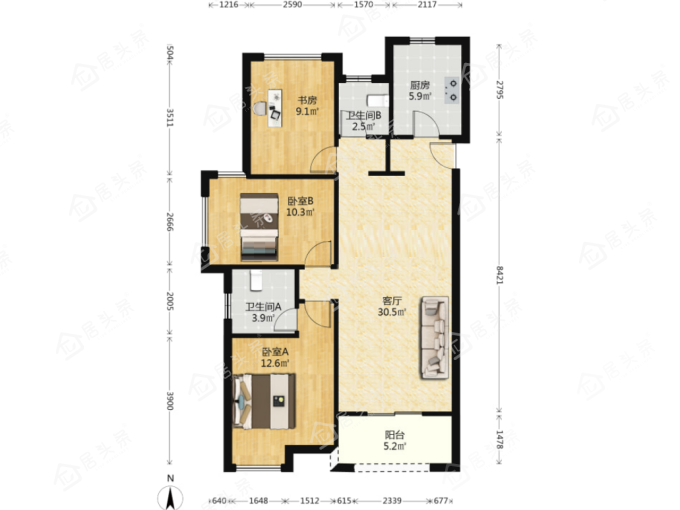 户型3室2厅1卫