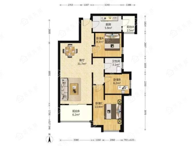 户型3室2厅1卫