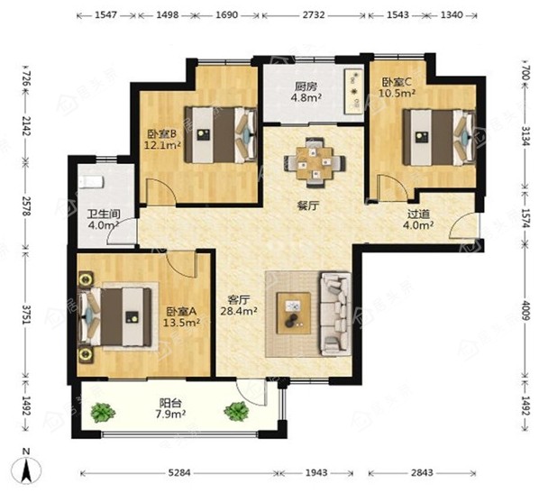 户型3室2厅1卫