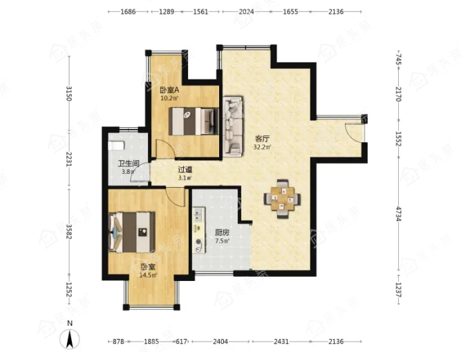 户型2室2厅1卫