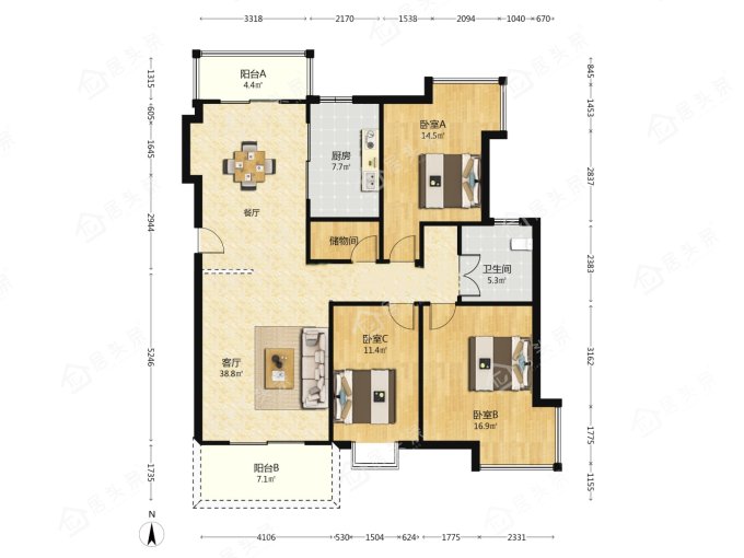户型3室2厅1卫