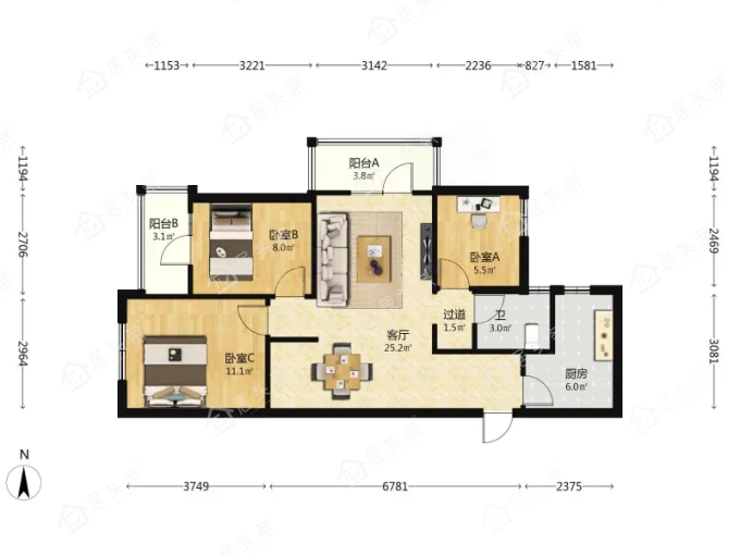 户型3室2厅1卫